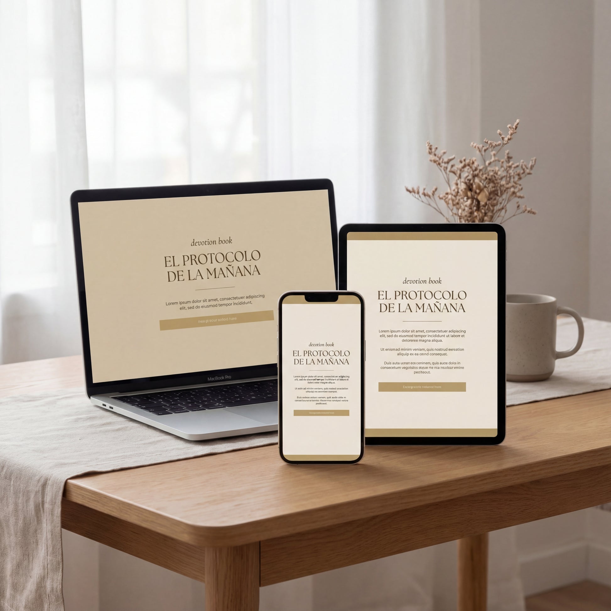 El Protocolo de la Mañana (PDF) + 4 Bonos GRATIS es un sistema práctico de 14 días para ayudarte a blindar tu espíritu y recuperar la paz con una rutina de 10 minutos al día, sin necesidad de horas de estudio. Recibirás acceso inmediato al ebook principal (60 pág.) y a 4 guías descargables: Diario de Oración “Conexión Eterna”, Los 7 Salmos de Poder, Checklist “Hogar en Paz” y Lectura Bíblica Rápida (10 min). Incluye Garantía de Paz de 7 días y puedes leerlo en tu celular, tablet o imprimirlo.